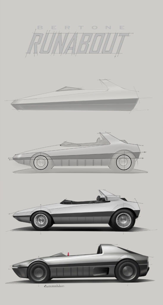 In the 1960s, design houses like Bertone pushed automotive design out of the stodgy practicality of its past and contemplated the vehicle as a means of self-expression. I think this is most evident in the single-minded concepts (I guess you could, perhaps unfairly, call them gimmick concepts) that took an idea to an extreme conclusion—not merely the incidental charisma of a Volkswagen Type 1, for example, but the all-in extravagance of concepts like the Autobianchi A112 Runabout that Bertone just reimagined for the 21st century.