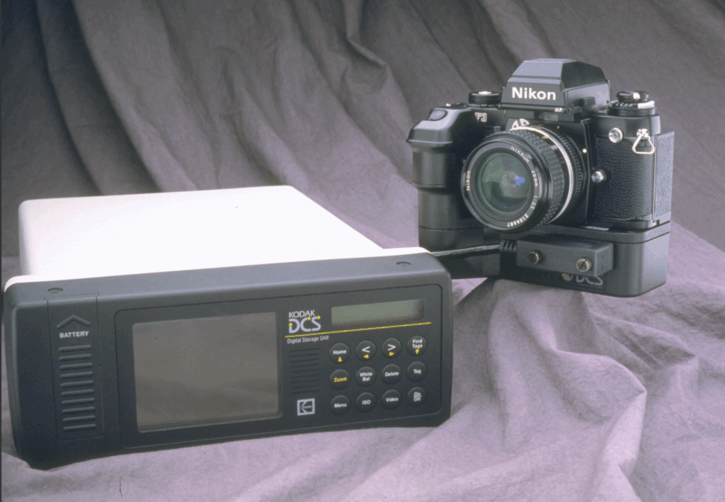 While Kodak wasn’t keen on dropping its lucrative film products, the company persisted with digital image sensor technology (and, to be fair, made quite a bit licensing the technology to other camera makers). But first, Kodak needed to build a camera that didn’t look like something kitbashed from an abandoned Radio Shack, something the company could use to sell the technology to photojournalists. It developed an enormous, clunky processor and storage device known as the Digital Storage Unit, hooked up to the 1.3 megapixel CCD sensor by a physical cable. With 200 MB of storage capacity, it could hold 156 images. You could carry it with a bulky hip pouch provided by Kodak while it was tethered to the capture device, which was separate from the processor and storage unit.