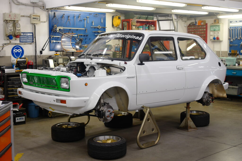 “The Fulvia was brilliant, but even from the beginning it needed optimization,” Ratto says. He remarks that since the engine is such an unusual design–a V4 mounted at a 45° angle–it’s hard to squeeze more power out of it using techniques that work for typical contemporary inline designs. “To really tune this engine, you must have a dyno, there’s simply no other way to understand what’s going on,” he tells me as we walk towards a small section of the shop where he built out a dyno room complete with sound deadening and exhaust venting. Resting outside the door is a 1.3 liter motor waiting to go in for testing. Ratto doesn’t change the displacement of Lancia’s original engines by boring a stroking the motor; there’s a certain purity to the original engines that he endeavors to preserve. Instead, he builds power by upgrading the internals using custom pistons of his own design, manufactured by a local machine shop. “The goal is to make reliable power, no matter if you build it for stradale or corsa (road or track), reliability is necessary. Ratto’s modified engines work in unison with his own suspension and exhaust upgrades to transform the cars into race-winning machines. A Ratto-prepped Fulvia took seventh place out of 100 cars at the last edition of the Peking to Paris rally. His Group 4 builds are what people ship their car to Savona for. Those take about two years from start to finish and start at $25,000. Ratto will make your car into a fast road car for between $12,000 and $15,000.