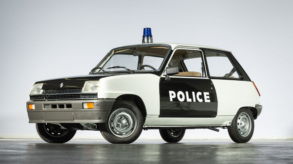 For those with a larger budget and a bit more indoor space, the auction house will offer a 1983 Renault 5 police car, complete with a blue beacon. Artcurial notes that this was a car that was donated to the automaker’s collection with a few dents here and there, but had been restored to a police car appearance along with gaining new seats, dashboard, and other items.