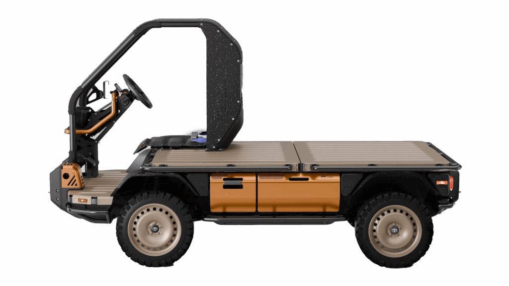 The idea, if this were to result in a production vehicle, is that Toyota supplies the chassis that has everything needed to drive. If needed, it could operate just as it is, a little flatbed thing. There’s precedent for this.
