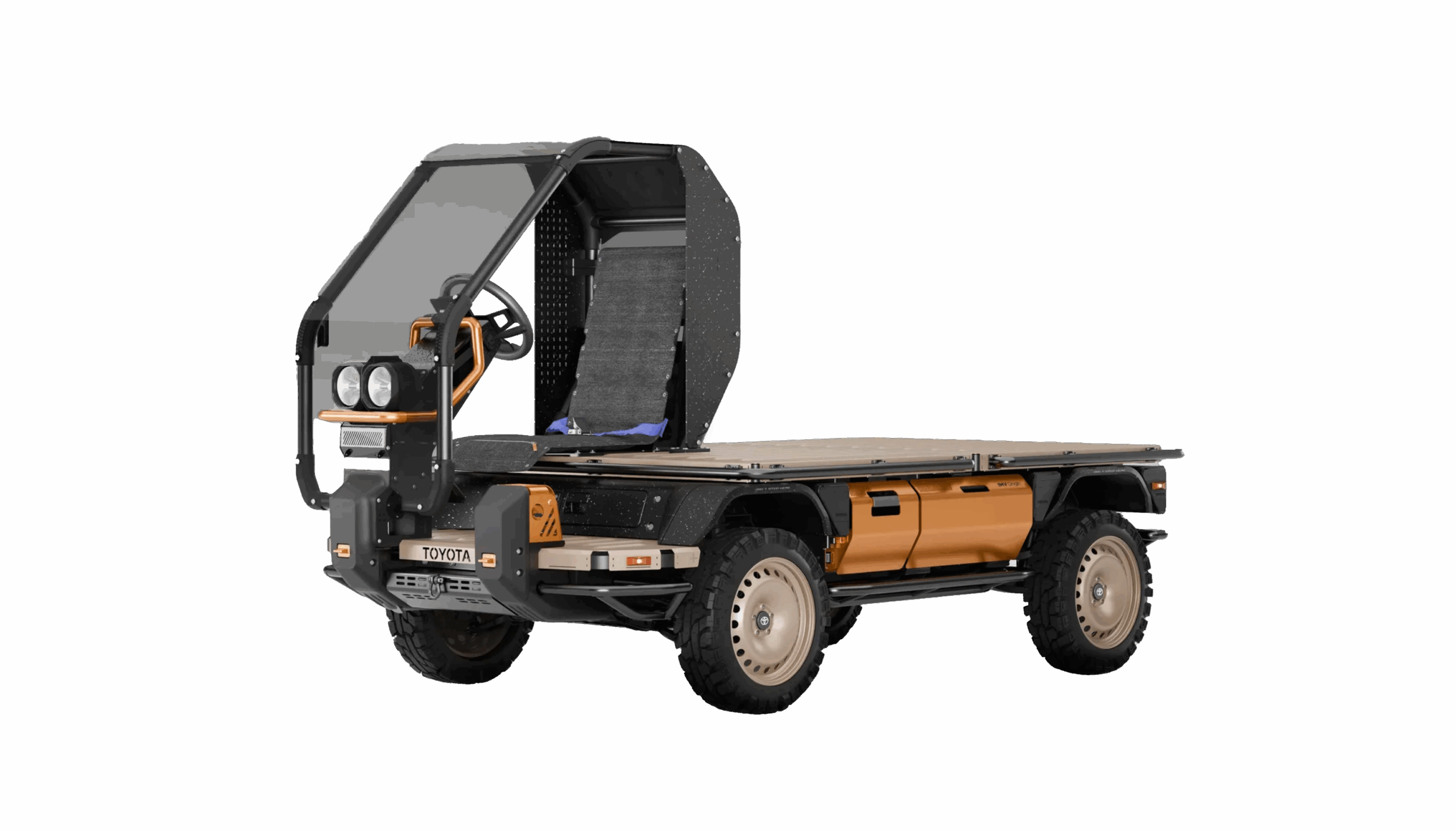 The idea, if this were to result in a production vehicle, is that Toyota supplies the chassis that has everything needed to drive. If needed, it could operate just as it is, a little flatbed thing. There’s precedent for this.