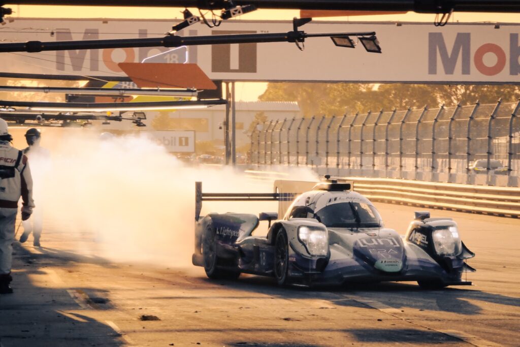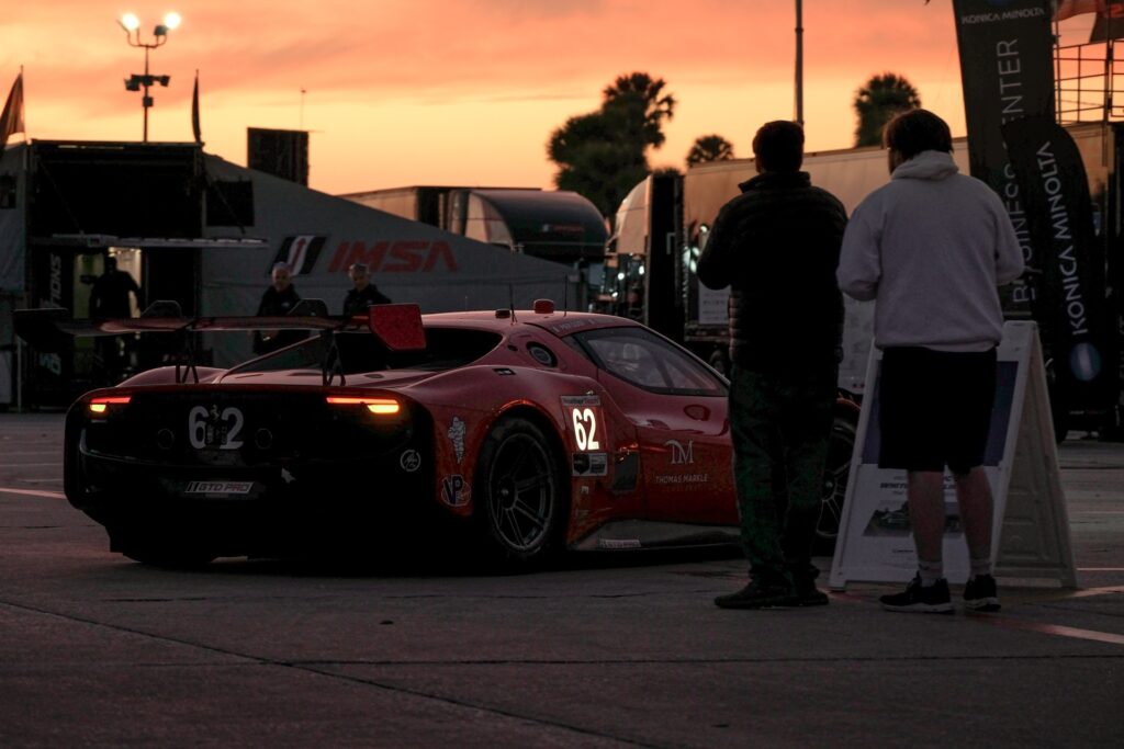 I ended up back along pit lane at sunset, which made for a great view of smoky burnouts, and outside of turn 1 as the sky turned red and then purple, doing the thing that Sebring is famous for. And sure enough, as if on cue, something palpable changed in the atmosphere. Literally, as darkness descended and the temperature dropped, and the wail of internal combustion through unrestricted exhaust deepened in the denser air. But something else was changing, too, the energy around the track, a crackling of electricity and anticipation.