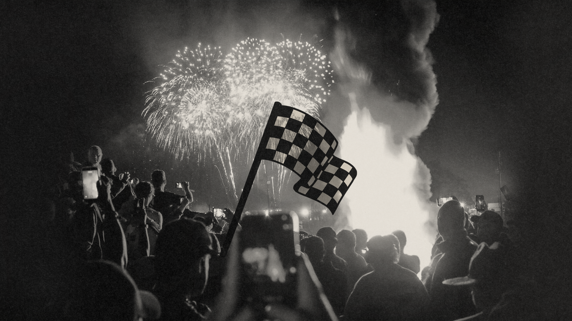 We’d made it to the fence at turn 7 when the race concluded. As fireworks along the Ulmann straight illuminated the night sky in the background, the flames before us reached even higher, the promise of the sacrificial couches now fulfilled. Numberless figures raised their phones in exaltation, silhouetted against the inferno, dizzy with drink or fatigue. All of us transfixed by the ancient rite. The burn.